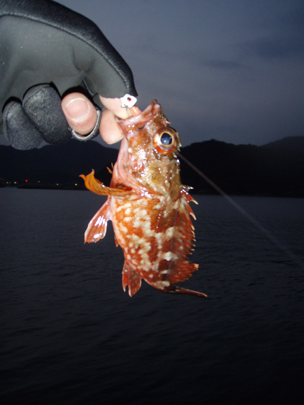 まだあたりも暗かったため、まずはメバリングロッドでジグヘッドをキャスト。一投目でカサゴをキャッチ!メバル、カサゴ数匹を釣り上げましたが、いずれも小さかったので、リリースしました。