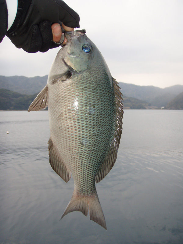 明らかに子グロとは違う引きです!ハリス1.15号と細ハリスだったので、慎重にやり取りし、タモ入れしてあげたのは32cmの尾長グレ!
