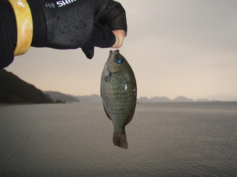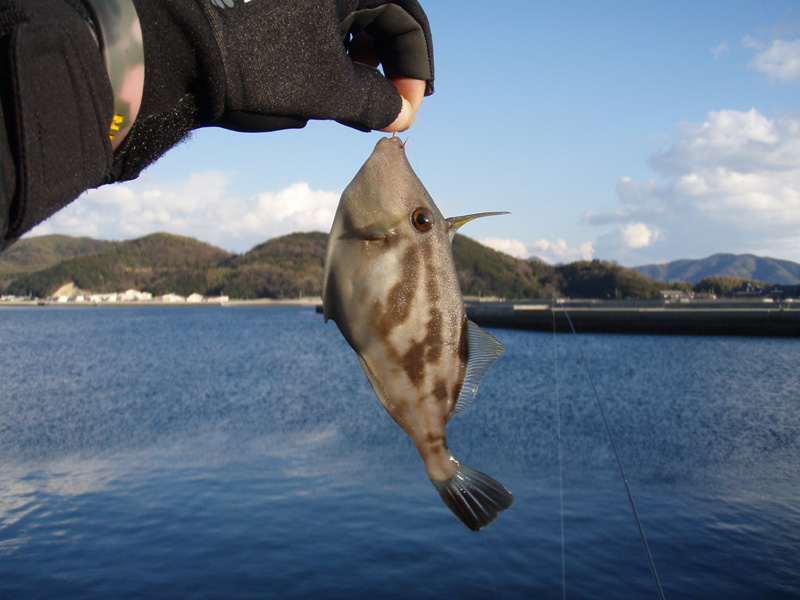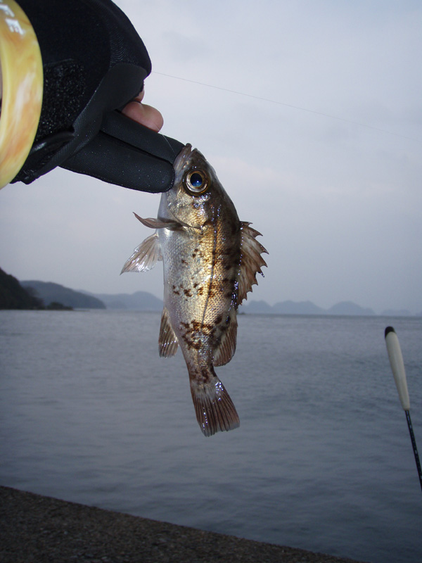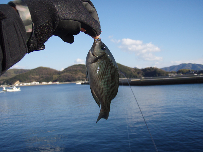 お隣のお子さんたちがサヨリを爆釣しているのを横目にフカセ釣りで頑張ってみましたが、真鯛の稚魚やカワハギばっかりで、肝心の寒グレ(クロ)が釣れない・・・