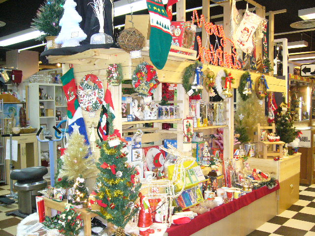 小さめのクリスマス・ツリーがよく売れてます。なにげに、オシャレ雑貨屋さんにあるような小物もちらほらあります!食器類もございます。ホームパーティー用にお手頃・格安・リサイクル商品を利用して、浮いた分はプレゼントに回しましょう(笑)