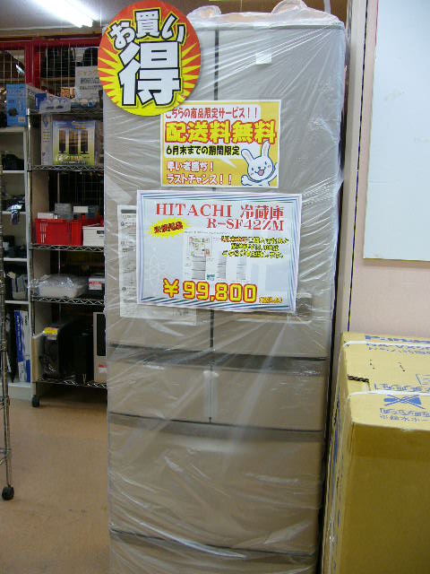 本日はこちら!!未使用品 日立冷凍冷蔵庫 R-SF42ZM ¥99,800(税込み)をなんと、6月末までにご購入していただくと、配送料を当社負担にてご提供!!