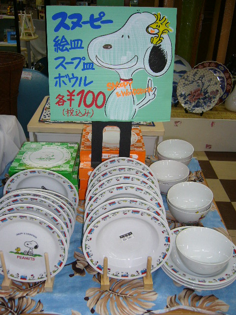 『スヌーピー』の絵皿・スープ皿・サラダボウル 各¥100(税込み)