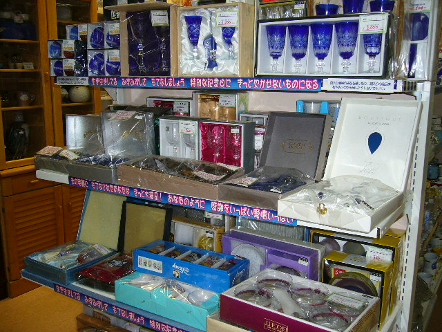 ショーケース内には、ティファニーやバカラのグラスもあるので、要チェック♪