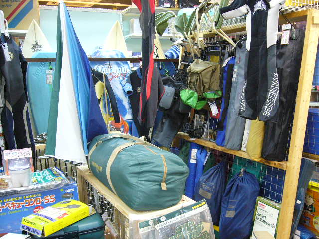 スポーツコーナーでは、テントや寝袋、アウトドア用チェアー、ピクニックバスケットetc・・・