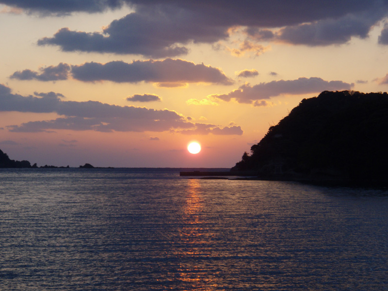 帰り支度の最中、夕日がとてもきれいだったので、しばし手を休め、その光景を眺めていました。